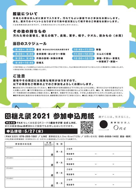 ・農作業には体に負担のかかる場合があるため、健康管理に気を付けてご参加ください。